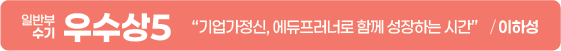 ‘너무 어렵고 내가 잘할 수 있을까?’라는 두려움을 갖고 있었지만, 이번 경험으로 저는 기업가정신이 기업가에게만 요구되는 덕목이 아닌, 우리가 모두 삶에서 가져야 할 태도라는 것을 깨달았습니다.
