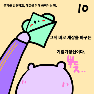 기업가정신은 새로운 기회를 발견하고 어려움 속에서도 도전하며, 더 나은 해결책을 찾아내려는 힘이라고 생각합니다.